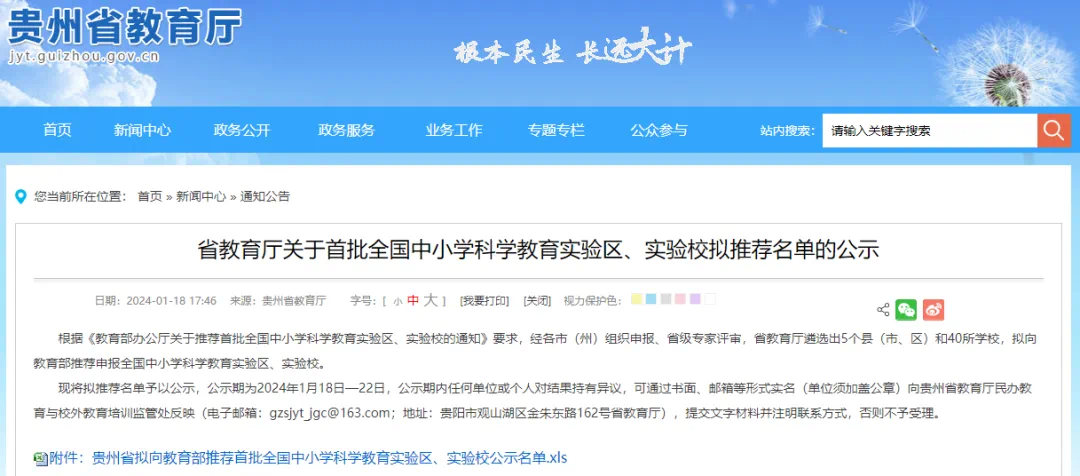 近日,首批全国中小学科学教育实验区、实验校拟推荐名单已出炉,经各市(州)组织申报、省级专家评审,遴选出5个县(市、区)和40所学校,现将拟推名单予以公示。